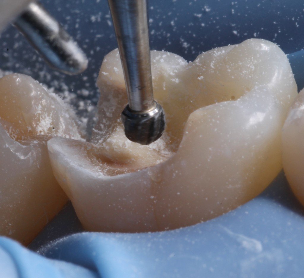 Depois da limpeza se restaura o espaço com materiais como ouro, porcelana, uma resina composta (restauração da cor do dente) e amálgama (uma liga de mercúrio, prata, cobre, estanho e algumas vezes zinco).